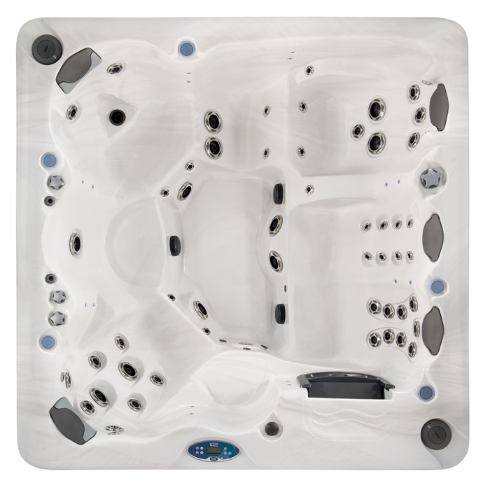 В этой модели предусмотрено все, что позволит прекрасно отдохнуть большой компании. Это и просторная чаша, и более 50 форсунок, и аудио система, и аэромассажные форсунки, и подголовники – преимущества разработки можно перечислять очень долго. Рассчитан на компанию из семи человек. Vita Spa Cabaret – прекрасный бассейн для коллективного отдыха.